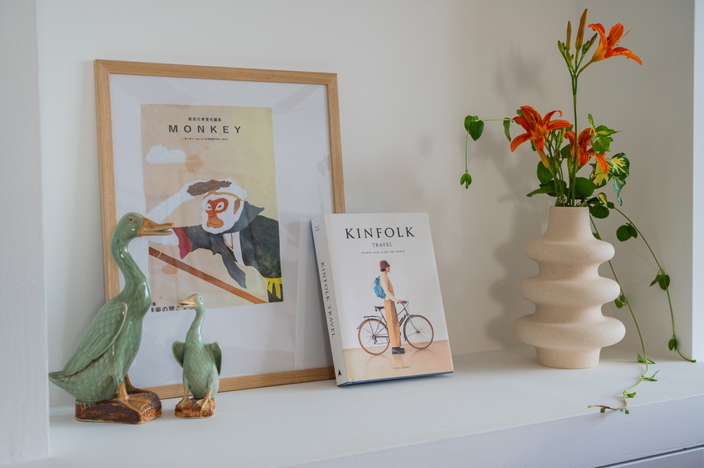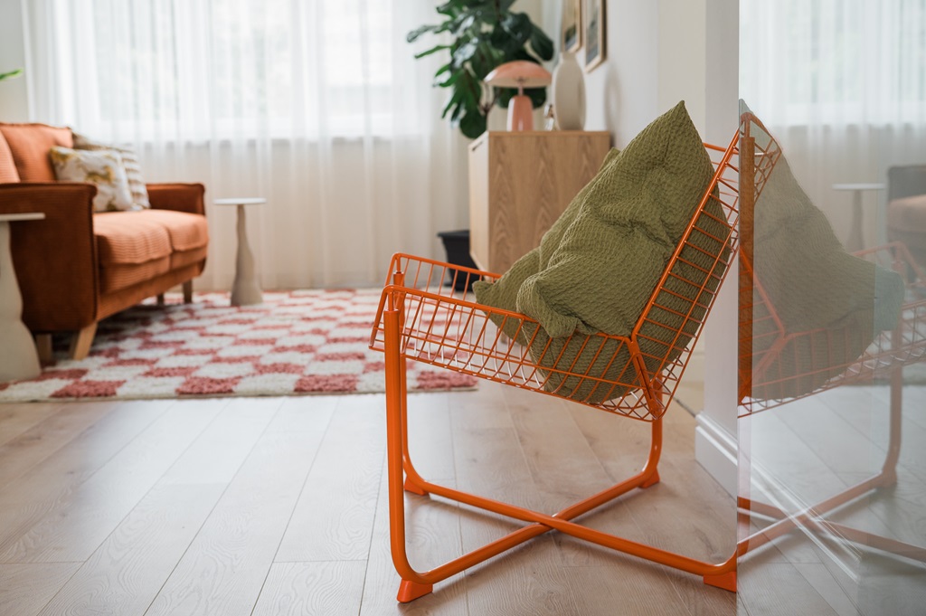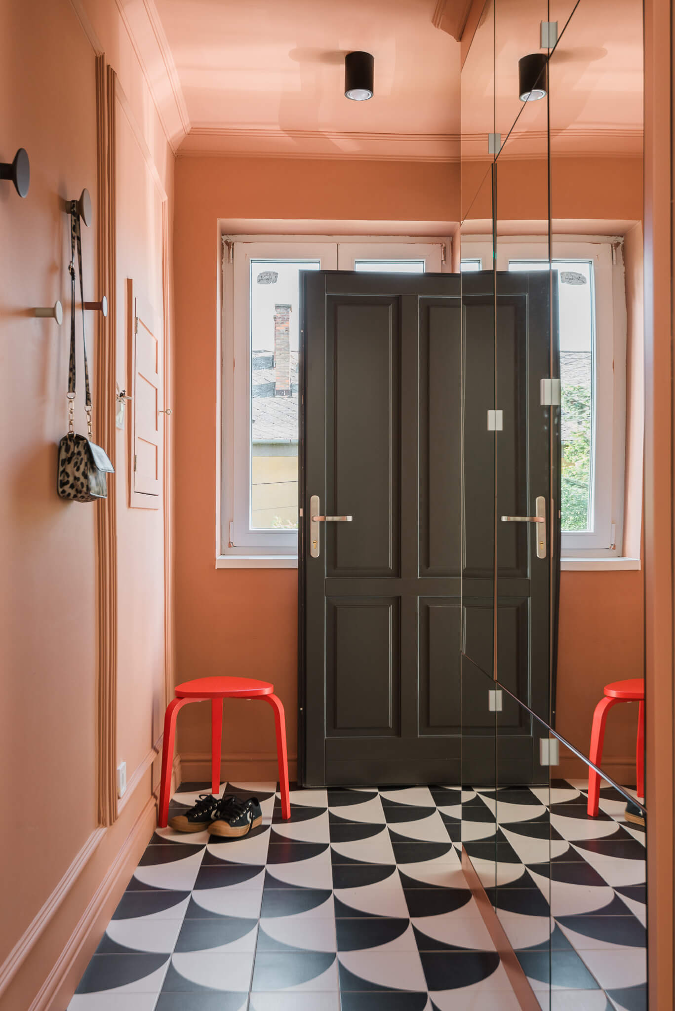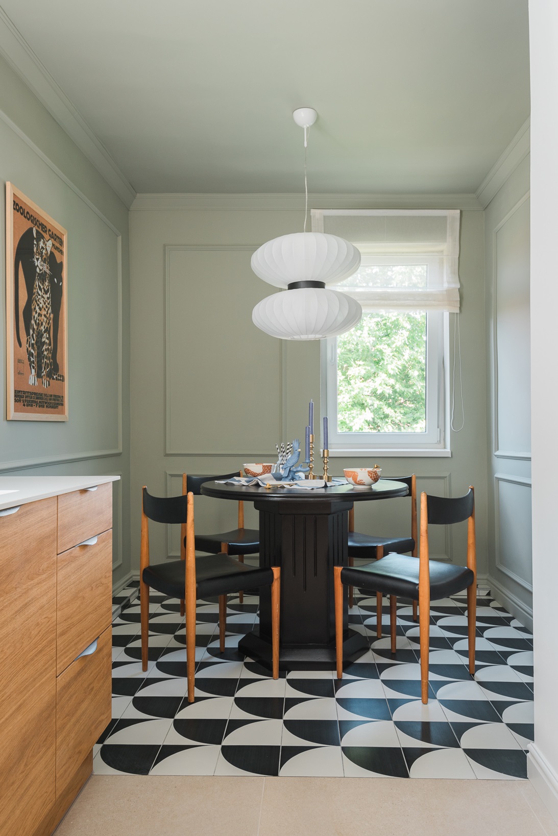 A változatos, mégis egységes összképért a gondosan választott, ámde merészen használt falszínek és a kontrasztos járólapok felelnek, a fali lécezés pedig finoman hozza be a színforgatagba a megnyugtató klasszikus eleganciát. A konyhaszekrény anyagait nem csak nézni, de tapintani is kellemes érzés. A nappali és a hálószoba textúrái puhák, a pasztell árnyalatokat itt-ott felpezsdíti egy-egy élénk szín. Az egész lakás eklektikájára jellemző a régi mondás: az ellentétek vonzzák egymást.