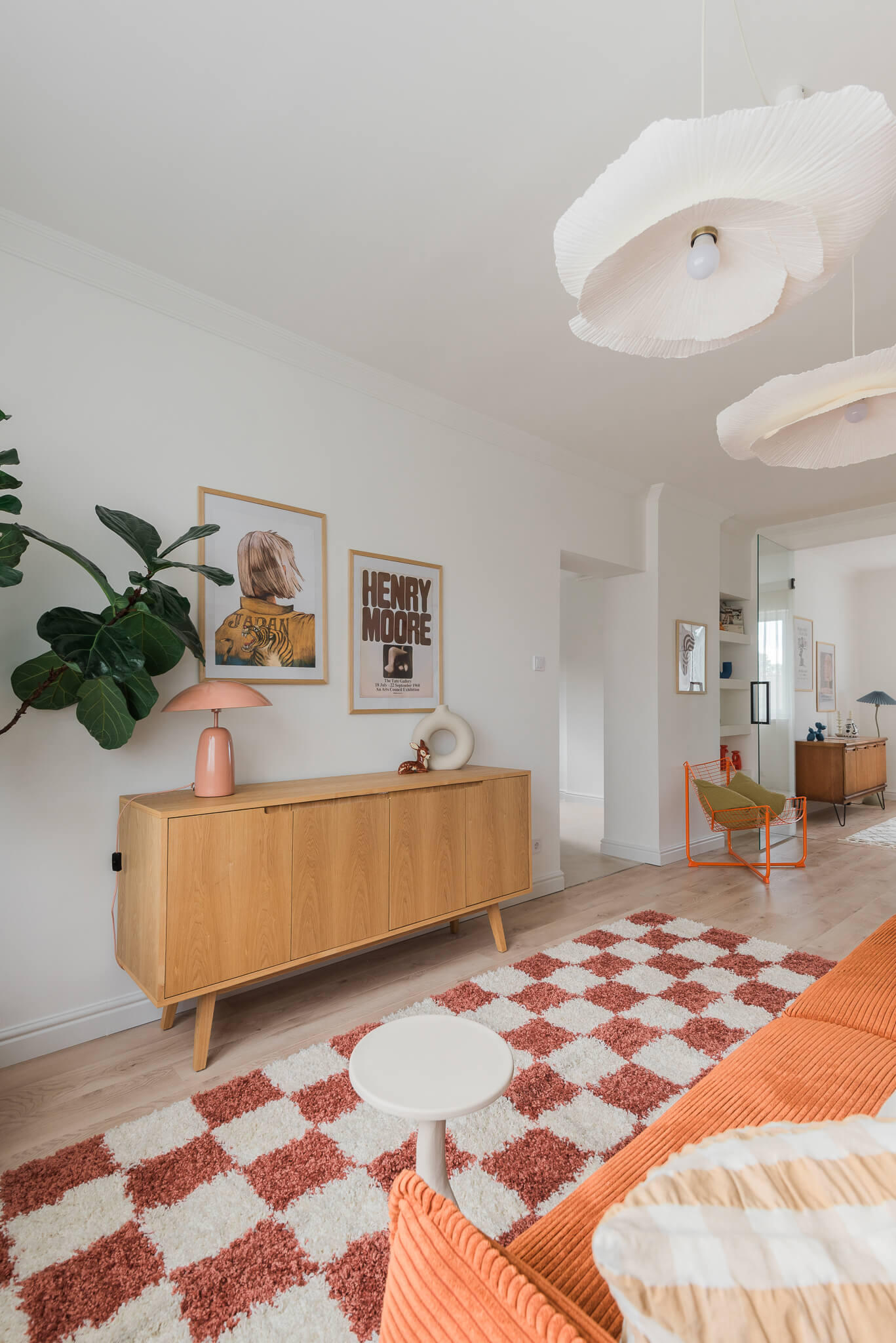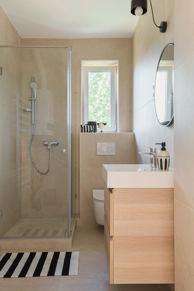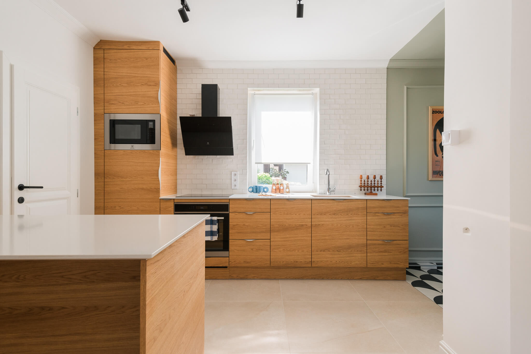 Első felmérésünkkor a kis társasház első emeletén elhelyezkedő ingatlan viszonylag jellegtelennek tűnt, de jó fényviszonyokkal rendelkezett, éppen a belső bontásokat kezdték el. Volt még lehetőség további közfalakat is bontani vagy építeni, így újragondoltuk a helyiségek funkcióját és méretét. Szerettük volna kiragadni a kis lakást az eredeti, kissé morózus, dobozszerű elrendezéséből, és minél tágasabb, fényesebb tereket elérni. Ezért a konyhát az étkezővel vontuk egy térbe, míg a hálószobát egy elfüggönyözhető üvegfallal választottuk le a nappaliról. Így, a több ablakból bejutó természetes fénynek köszönhetően sokkal nagyvonalúbbá és jobb hangulatúvá vált a lakás.