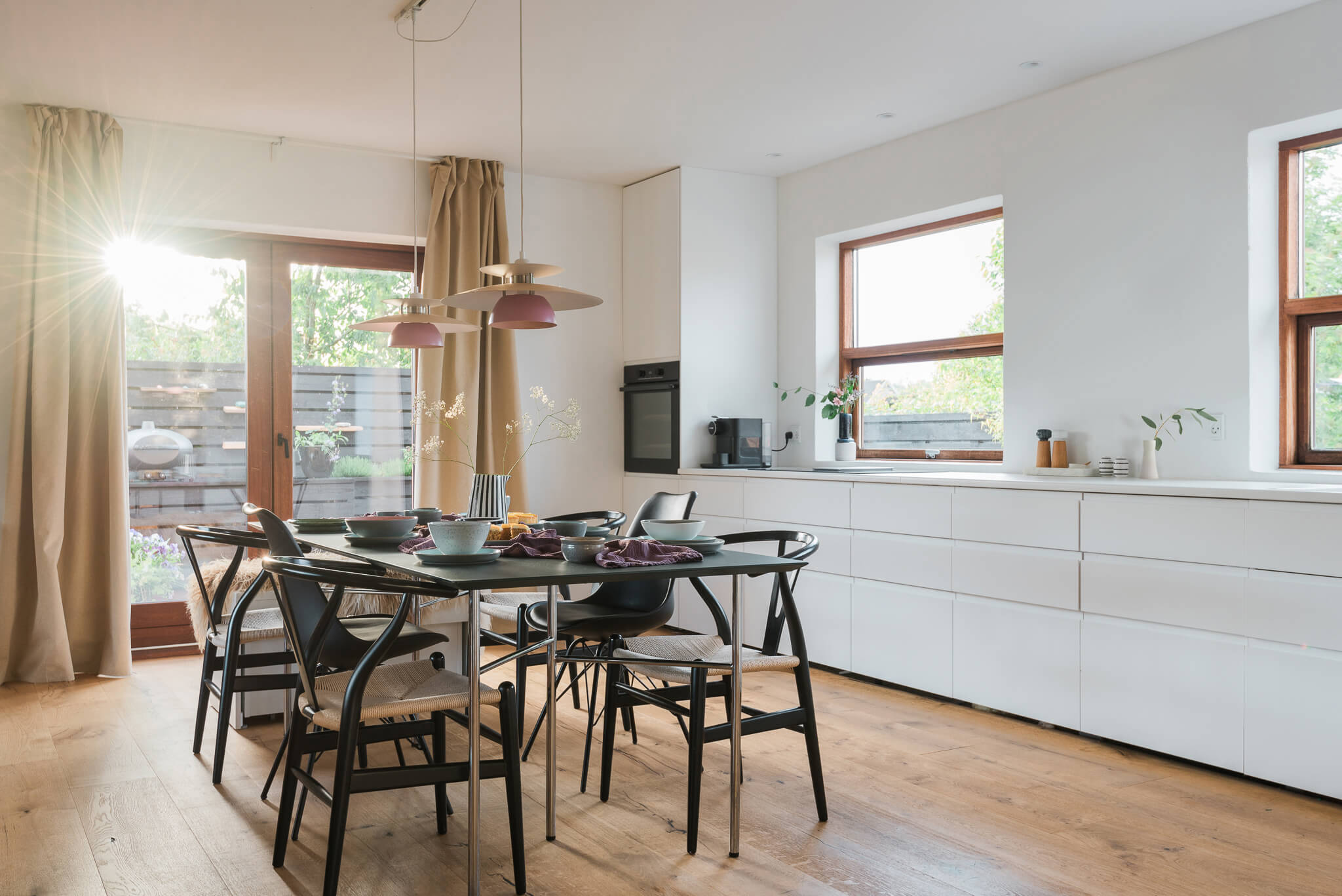 A viborgi családi ház, amely egy sűrűn beépített külvárosi negyedben található, még a múlt században épült. A tulajdonosok nemrégiben felújították, de a ház még nem igazán kapta meg azt az otthonos hangulatot, amire vágytak. Mi voltunk azok, akik segítettek teljesen belakni és személyre szabni az ingatlant. Az alapot jó alapanyagok biztosították, mivel a már meglévő bútorok jól illeszkedtek az új térszervezéshez. A feladatunk az volt, hogy úgy válasszunk új bútorokat, hogy azok illeszkedjenek a család elképzeléseihez, miközben figyeltünk a költségvetési határokra is.
