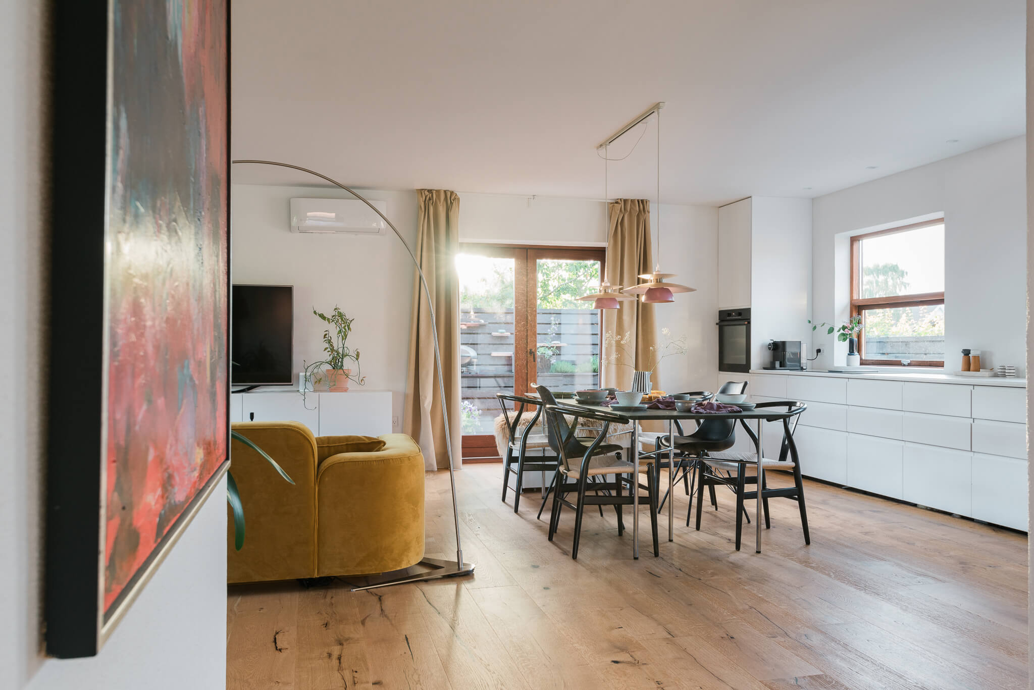 Egy dán pár keresett meg minket, miután az interneten találkoztak a munkáinkkal, és úgy érezték, hogy stílusunk jól illik az elképzeléseikhez. Felkértek minket, hogy segítünk berendezni otthonukat és kiadó ingatlanjukat. Bár nem ez volt az első külföldi projektünk, ez volt az első skandináv megkeresés, ami különleges izgalommal töltött el minket. A feladatunk az volt, hogy olyan tágas, stílusos, és fotókon is vonzó enteriőröket tervezzünk, miközben figyelembe kellett venniük a már meglévő bútorokat és a költségvetési határokat az új darabok kiválasztásakor.